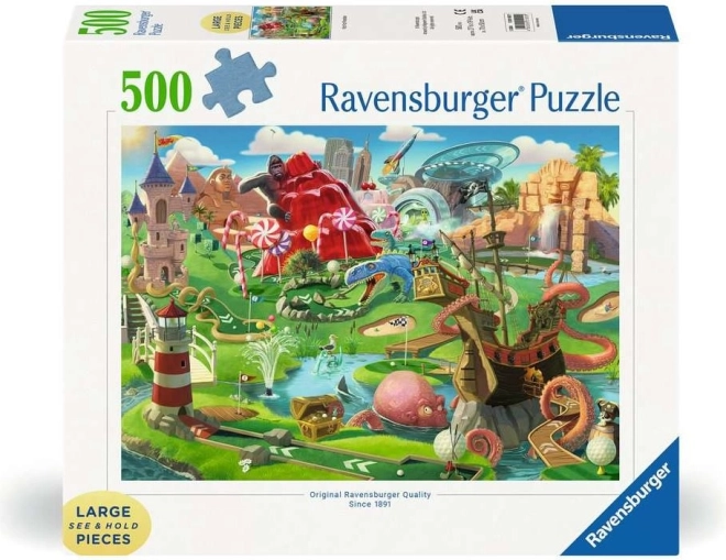 Puzzle RAVENSBURGER Minigolfový raj XXL prináša pohodlné skladanie vďaka extra veľkým dielikom, ktoré perfektne zapadajú a držia tvar. Vysokokvalitná tlač s jasnými farbami zvýrazní každý detail motívu a poskytne príjemný relax pre celú rodinu.