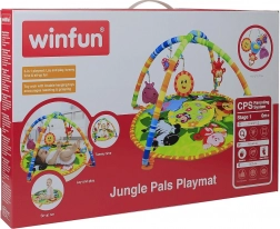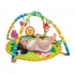 Táto mäkká a bezpečná hracia deka s motívmi džungle je skvelým parťákom počas celého prvého roku života a pokojne aj dlhšie. Bábätko zaujmú kontrastné farby a závesné hračky na hrazdičke, ktoré môže postupne pozorovať, uchopovať a triasť nimi. Tým prirodzene posilňuje ruky, chrbát a krk, zlepšuje koordináciu ruka–oko a rozvíja kognitívne zručnosti.