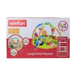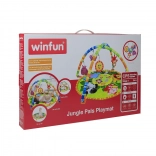 Farebné motívy džungle a závesné hračky v rôznych výškach podporujú koordináciu ruka–oko, úchop a celkovú zručnosť.