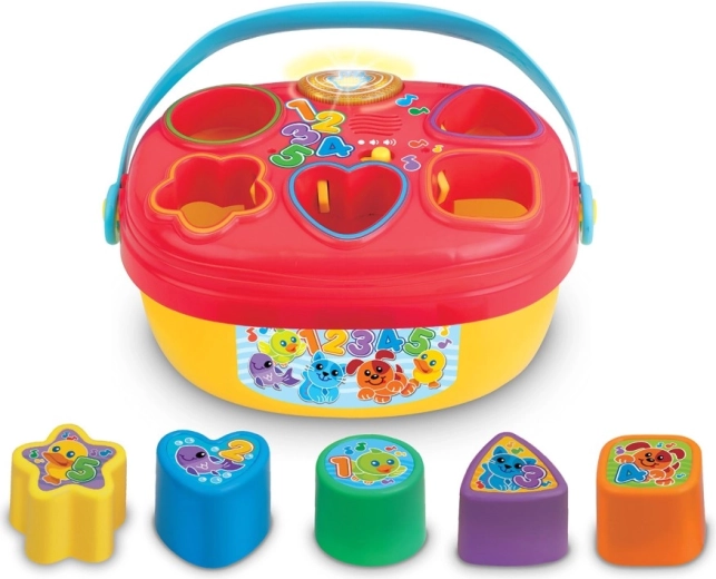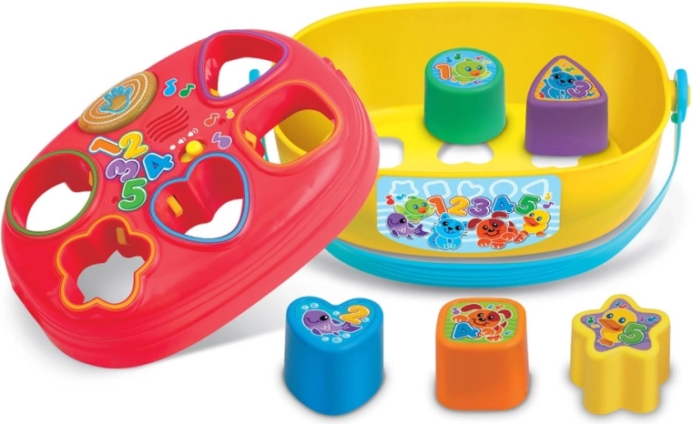 Objavte farebný triedič tvarov s melódiami, blikajúcim svetielkom a kockami rôznych tvarov, ktoré dieťa vkladá do správnych otvorov. Za správne vloženie je odmenené veselými zvukmi a zvukmi zvieratiek. Hračka má praktické madlo na ľahké prenášanie a odnímateľné veko na rýchle vybratie kociek a nové kolo zábavy. Hudobné prvky podporujú rozvoj sluchu a podnecujú zmyslové vnímanie.
