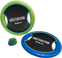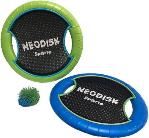 Neodisk Sporto je akčný set pre rýchlu a nenáročnú vonkajšiu hru. Každý disk má pevný, no ľahký okraj a pružnú sieť pre jednoduché chytanie aj odrážanie mäkučkej loptičky. Vďaka jednoduchým pravidlám sa do hry okamžite zapojí celá rodina.
