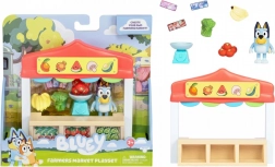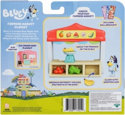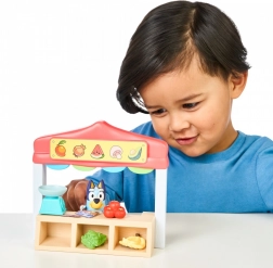 - Stánok s váhou, odnímateľné priečinky, plastové ovocie a zelenina, bankovky, figúrka BLUEY