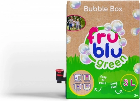 Fru Blu Bubble Box je balenie, ktoré prináša revolúciu do sveta bublinových hier. Má ľahko použiteľný kohútik, ktorý zaisťuje precízne dávkovanie a minimalizuje riziko rozliatia. Každá súčasť tohto produktu je recyklovateľná, čo prispieva k ochrane životného prostredia.