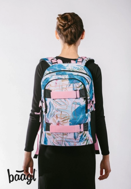 BAAGL školský batoh Skate Leafs spája štýl s funkčnosťou. Ergonomicky tvarovaný chrbát a plne nastaviteľné ramenné, prsný aj bočné kompresné popruhy zabezpečujú pohodlné nosenie a perfektné prispôsobenie postave. Odolný vodeodolný materiál chráni obsah a reflexné prvky zvyšujú viditeľnosť za šera.