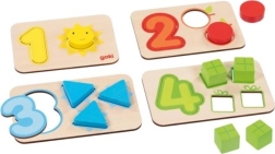 Drevená vkladačka GOKI s motívom číslic 1–4 je skvelou voľbou na prvé zoznámenie s číslami a základnými tvarmi. Vďaka odolnému spracovaniu a výrazným farbám si deti hru rýchlo obľúbia, zatiaľ čo si prirodzene precvičujú koordináciu oko–ruka, logické myslenie a predstavivosť.