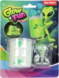 Zábavná hracia pomôcka pre deti, svietiaca slizová hmota je ideálna hračka na dlhé hodiny hrania v tme. Ponúka komplexnú zmyslovú skúsenosť, keď si ju budete nechávať prechádzať medzi prstami a pozerať, ako v tme svieti. Súčasťou balenia je aj malý mimozemšťan, ktorý dodáva hre zvláštny nádych dobrodružstva.