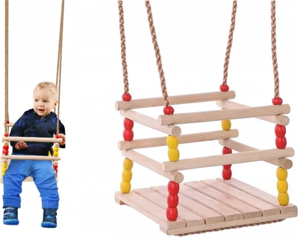 Bezpečná a pohodlná detská hojdačka z prírodného dreva do záhrady aj do bytu. Ponúka pevnú konštrukciu, bezpečnostnú zábranu a jednoduché zavesenie. Skvelá na vonkajšiu zábavu aj rozvoj motoriky a koordinácie najmenších.