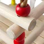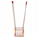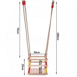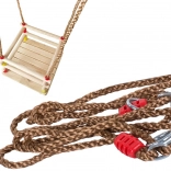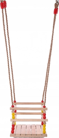 Silné pletené laná s krúžkami a kovaním zabezpečujú stabilitu a bezpečnosť. Kompaktné rozmery šetria miesto a hojdačku ľahko prenesiete či uskladníte. Farebné koráliky dodávajú hravý vzhľad a deti si hojdačku rýchlo zamilujú.