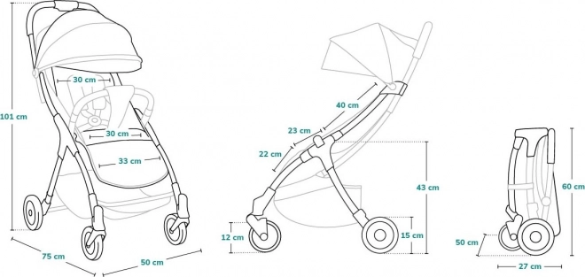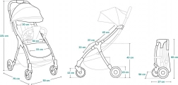 Kočík zložíte behom chvíľky na rozmery 60 × 50 × 27 cm. Vďaka nízkej hmotnosti 6,6 kg a priloženej prepravnej taške sa skvelo prenáša aj preváža v aute.