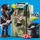 - 2 figúrky (policajt, zlodej), policajná motorka, bankomat, železná páka, vak, bankovky a doplnky