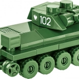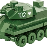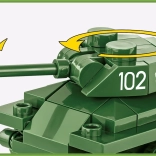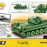 Model T-34/76 z plastových kociek obsahuje pohyblivú vežu a kolesá, čo prispieva k realistickému dojmu z vojenskej tematiky.