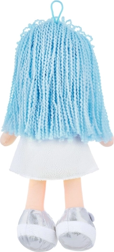Očarujúca textilná bábika ideálna ako mäkká priateľka pre vaše dieťa. Vlna modrých vlasov a žiarivý úsmev na jej tvári vytvárajú dokonalú mazlivú hračku.