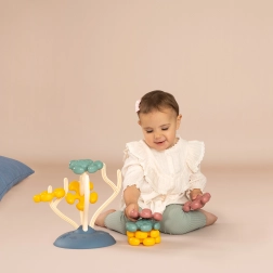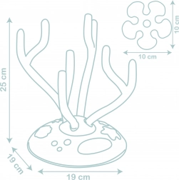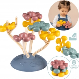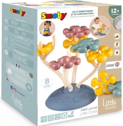 Malé Smoby Korálové stromové hračky sú vyrobené z ôsmich rôznofarebných plastových prvkov pripomínajúcich ozdobné osminohé a korytnačie tvary. Deti môžu jednotlivé časti jednoducho prepojiť a meniť ich usporiadanie na vetvách stromu, čo podporuje ich tvorivosť.