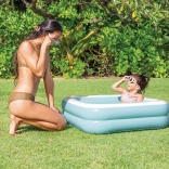 Urobte deťom radosť vlastným bazénikom, ktorý postavíte počas pár minút. Štvorcová konštrukcia s vyšším okrajom je stabilná a pohodlná, zatiaľ čo nafukovacie dno tlmí nárazy a zvyšuje komfort pri sedení aj hraní. Vďaka kompaktným rozmerom je bazénik ideálny pre batoľatá a predškolákov.