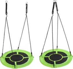 Veľká okrúhla hojdačka typu bocianie hniezdo s priemerom 120 cm ponúka priestranné a pohodlné sedadlo so silnou oceľovou konštrukciou s EPE polstrovaním, odolnou tkaninou Oxford 600D a pevnou PP sieťou. Vďaka nosnosti až 150 kg a nastaviteľným lanám s priemerom 10 mm je ideálna pre deti aj dospelých, na záhradu, terasu aj detské ihrisko.