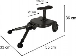 Užite si pohodlné prechádzky s dvoma deťmi vďaka univerzálnemu stupátku so sedadlom. Staršie dieťa môže podľa potreby sedieť alebo stáť, zatiaľ čo mladšie odpočíva v kočíku. Odolné spracovanie a stabilné kolieska zabezpečujú plynulú a bezpečnú jazdu.