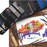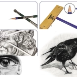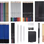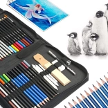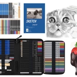 Súprava obsahuje ceruzky rôznej tvrdosti, pastely, uhlíky, blendery, strúhadlo a skicár, čo je všetko, čo potrebujete na kompletnú umeleckú tvorbu.