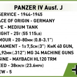 Tato stavebnica obsahuje model tanku Panzer IV Ausf. J, ktorý verne reprodukuje historický dizajn s pohyblivými časťami, ako je otočná veža.