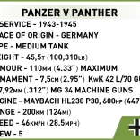 Mini model legendárneho tanku Panzer V Panther od COBI v mierke 1:72 zo 126 dielikov poteší začiatočníkov aj zberateľov. Ponúka otočnú vežu, pohyblivú hlaveň a kvalitné potlače s historickými označeniami. Vyrobené v EÚ, plne kompatibilné s inými značkami, s jasným obrázkovým návodom.