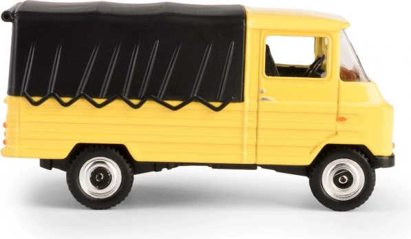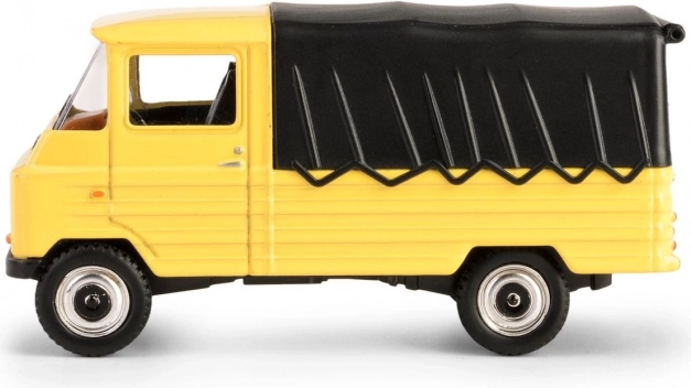 Žlté lakovanie, čierna plachta a detailné kolesá dodávajú modelu autentický vzhľad do vitríny aj na hranie.