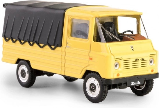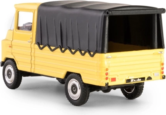 Objavte legendu vo vreckovej veľkosti: model FSC Žuk, vychádzajúci z kultového poľského úžitkového vozidla vyrábaného v Ľubline. Tento zberateľský kúsok vo výraznej žltej farbe s čiernou plachtou verne zachytáva vzhľad a proporcie originálu, vrátane detailov kabíny, kolies a masky.