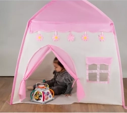Štýlový stan pre deti v ružovo-bielej kombinácii ponúka tri okienka zo sieťoviny a pohodlný vchod, takže je ideálny na čítanie, hranie aj uloženie obľúbených hračiek. Vďaka kompaktným rozmerom 126 × 130 × 90 cm sa hodí do detskej izby a možno ho vziať aj na chatu či terasu.