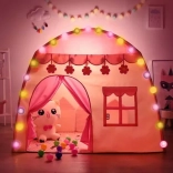 Roztomilý detský stan v tvare domčeka premení každú izbu na kúzelné útočisko na hru aj oddych. Vďaka ľahkej konštrukcii a praktickému obalu sa ľahko prenáša a rýchlo skladá. Súčasťou je svetelná girlanda cotton balls na batérie s 20 svetlami a dĺžkou 2,8 m, ktorá vytvára pohodovú atmosféru. Odolný materiál, stabilný rám a podlaha zaistia bezpečie pri hraní doma aj na terase.