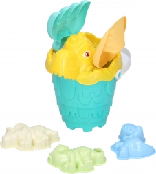 Zábavná súprava na piesok Dino pre malých staviteľov obsahuje všetko potrebné na hry na pláži aj na ihrisku. Nájdete v nej vedierko, viečko so sitom, 3 formičky dinosaurov, hrable a lopatku. Ideálna na rozvoj kreativity, jemnej motoriky a spoločné hranie.