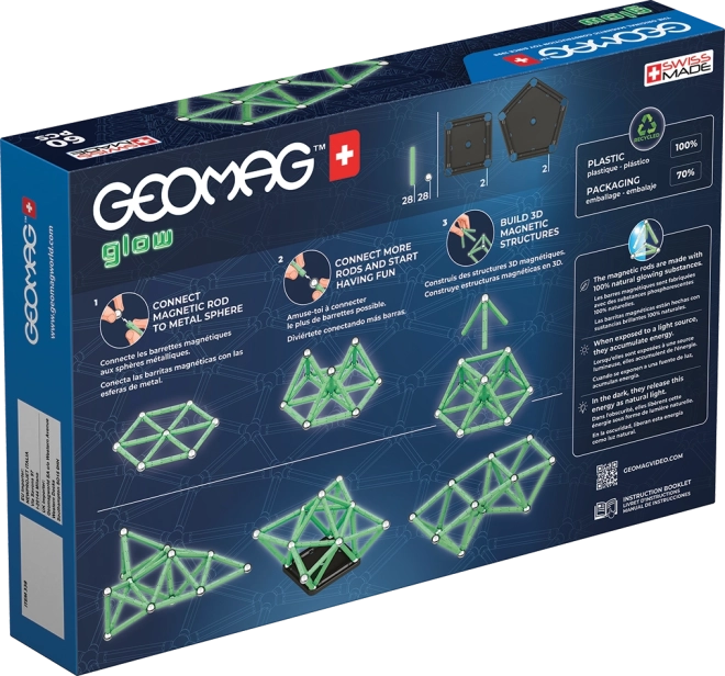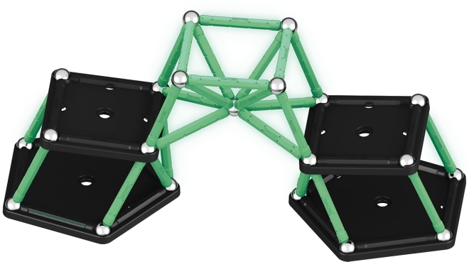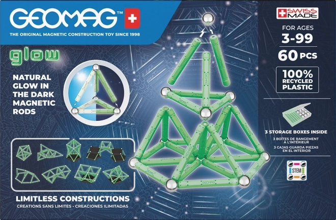 Stavebnica Geomag Glow prináša zábavu a vzdelávanie v jednom. Svietiace magnetické tyčinky ožijú po zotmení a premenia každý model na pútavú svetelnú podívanú. Diely sú vyrobené zo 100% recyklovaného plastu, takže sa deti hrajú zábavne aj udržateľne.