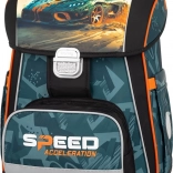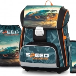 Školská sada s motívom závodného auta je vyvinutá pre deti už od prvej triedy. Obsahuje školský batoh s anatomicky tvarovaným chrbtom, ktorý ponúka pohodlné nosenie vďaka polstrovaným a priedušným ramenným popruhom. Nie len, že je batoh ľahký, ale aj bezpečný vďaka reflexným prvkom. Predná kapsa je ideálna pre desiatový box a bočné kapsy ponúkajú dostatok priestoru pre ďalšie školské potreby.