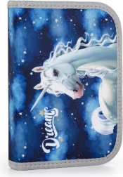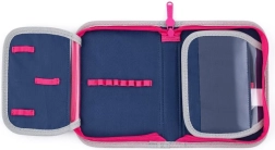 Puzdro: Jednoposchodové s dvoma chlopňami bez náplne, s gumovými pútkami na písacie potreby a priehľadnou fóliou pre rozvrh hodín na vnútornej chlopni.