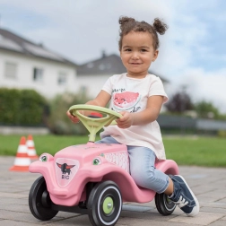 Roztomilé ružové odrážadlo BIG Bobby Car Classic Flower je ideálne pre deti od 12 mesiacov. Vďaka nízkemu ťažisku, tvarovanému sedadlu a otočným kolesám je stabilné, bezpečné a pohodlné. Ponúka volant s klaksónom, úchyt na ťahanie a hák na príves a skvele rozvíja motoriku a koordináciu pri hraní doma aj vonku.