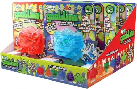 Slimy Gooblins je vysoko elastický, výborne sa naťahuje a stláča. Po hre ho uložte späť do obalu – vydrží zábavný na mnohé použitia.