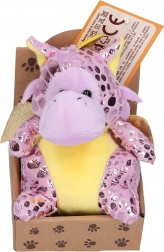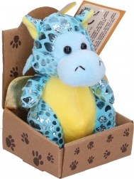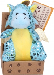 Roztomilý plyšový drak s výškou 13 cm poteší deti aj zberateľov. Má trblietavý vzhľad, je jemný na dotyk a dostupný vo viacerých farebných variantoch – fialová, zelená a modrá. Ideálny ako darček alebo do zbierky.