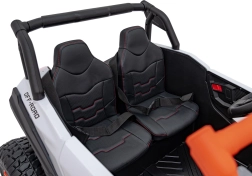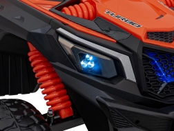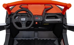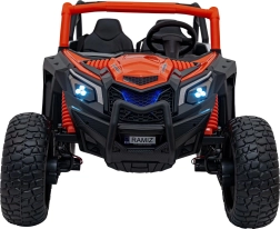 Off-road vozidlo UTV X3 v atraktívnej oranžovej farbe je ideálne pre všetkých malých dobrodruhov, ktorí chcú zažiť silu a zábavu terénnej jazdy. Toto vozidlo je vybavené štyrmi motormi s výkonom 200 W, čo zaisťuje dostatočný výkon do terénu.