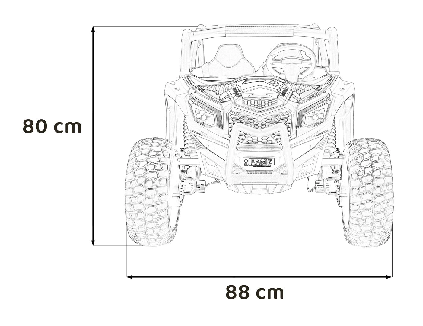 - Rozmery vozidla: Dĺžka 145 cm, Šírka 88 cm, Výška 80 cm