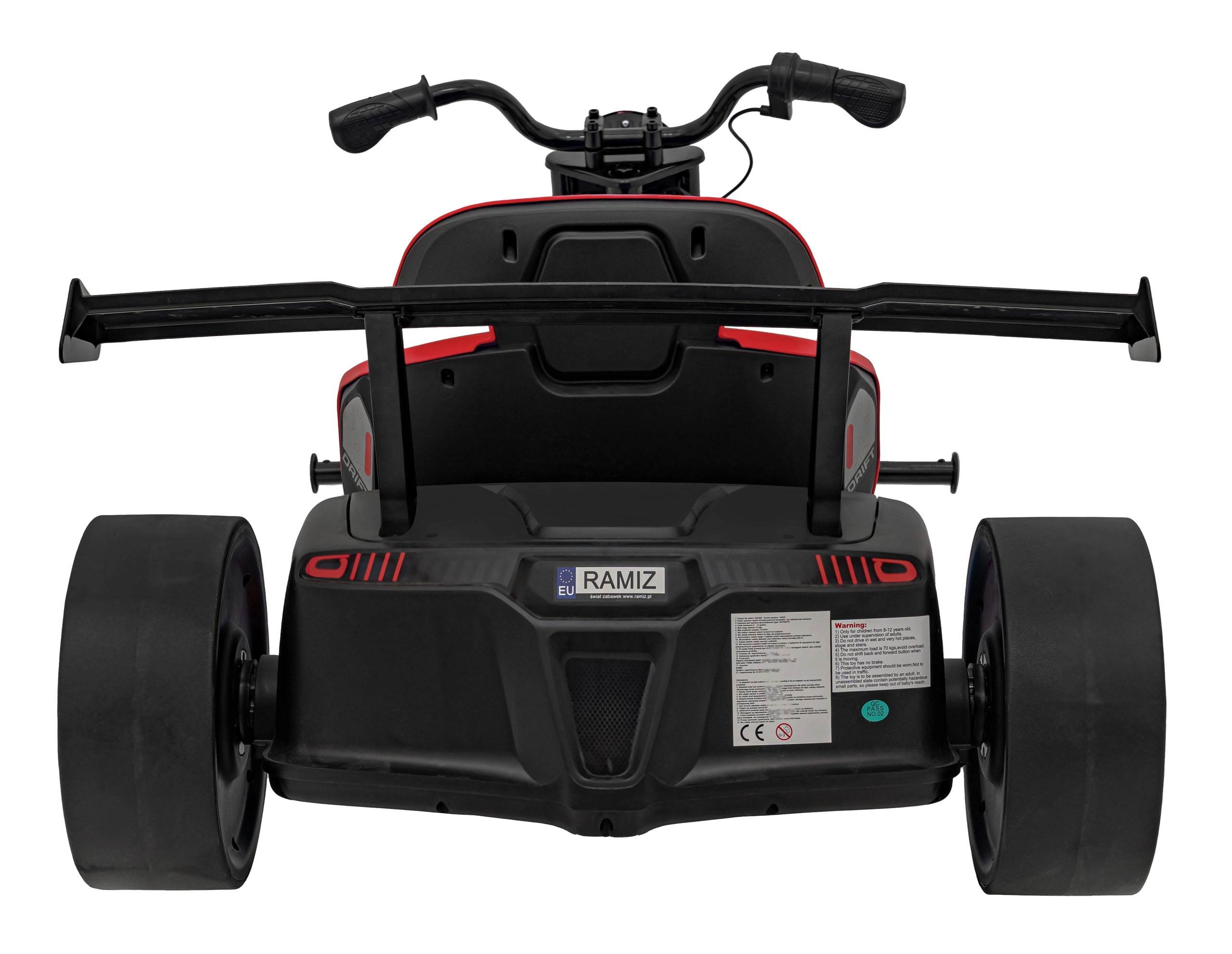 Užite si nekonečné hodiny zábavy s červeným driftovacím bicyklom, ktorý je ideálny pre deti. Jeho silné motory, nabíjateľné batérie a športové sedadlo poskytujú skvelý zážitok pre každého mladého vodiča.