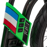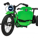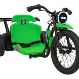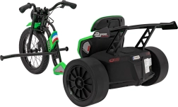 Trike je vybavený pevným predným pneumatikovým kolesom o rozmeroch 41x7 cm a plastovými zadnými kolesami pre drift o rozmeroch 28x11 cm. Umožňuje jednoduché manévrovanie vďaka svojim ergonomickým rukovätiam a kvalitným LED svetlám s možnosťou prepínania. Komfort zaisťuje športové sedlo s rozmermi 43 cm x 31 cm x 40 cm, ponúkajúce dvojitú reguláciu.