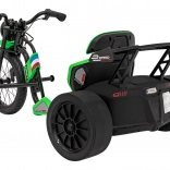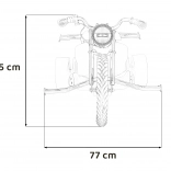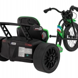 Trike je poháňaný dvoma motory s rýchlosťou 25000 ot./min. a je vybavený batériami 2x12V/10Ah pre dlhodobú zábavu.