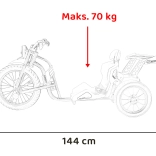 Trike je navrhnutý nielen pre zábavu, ale aj pre bezpečnosť, s prednými svetlami LED, robustnými pneumatickými kolesami a športovým sedadlom, ktoré ponúka dvojstupňovú reguláciu pre maximálne pohodlie.