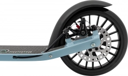 Kombinácia ručnej kotúčovej brzdy na zadnom kolese a klasickej nožnej brzdy poskytuje silný a dobre dávkovateľný brzdný účinok aj na dlhších zjazdoch.