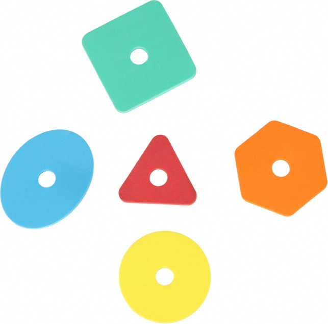 Súčasťou sú farebné tvary, ktoré deti vkladajú do otvorov – rozvíjajú jemnú motoriku, koordináciu oko–ruka a rozpoznávanie farieb.