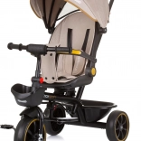 Táto šikovná trojkolka kombinuje pohodlie kočíka a zábavu z jazdy. V režime s rodičovskou rukoväťou máte plnú kontrolu nad smerom aj rýchlosťou, neskôr dieťa prejde na samostatnú jazdu s pedálmi. Otočné sedadlo o 360° umožní jazdu po aj proti smeru a dve polohy náklonu zaistia vždy pohodlné sedenie.