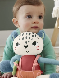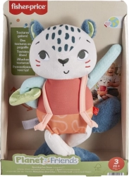 Plyšová panterka FISHER-PRICE Planet Friends je navrhnutá na jemnú senzorickú stimuláciu najmenších. Kontrastné vzory priťahujú pozornosť, mäkké textúry a ušká podporujú skúmanie dotykom a šustiace „čižmičky“ nabádajú k stlačeniu a počúvaniu. Dlhé nožičky, popruhy a posuvný krúžok motivujú deti k uchopovaniu, ťahaniu a tréningu jemnej motoriky.