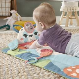 Šuštivá hračka a bezpečné zrkadielko sa dajú pripnúť na panel či pútka na podložke. Bábätko tak zakaždým čaká nová, podnetná hra.