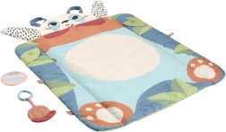 Objavte mäkkú a všestrannú podložku pre bábätká, ktorá podporuje hru na chrbátiku, pásenie koníčkov aj cestovanie. Ekologicky šetrná podložka s motívom pandy ponúka bohatú senzorickú stimuláciu vďaka odnímateľnému zrkadielku a šuštiacej hračke, ľahko sa zroluje a zaistí popruhmi a po vybratí hračiek ju môžete prať v práčke.