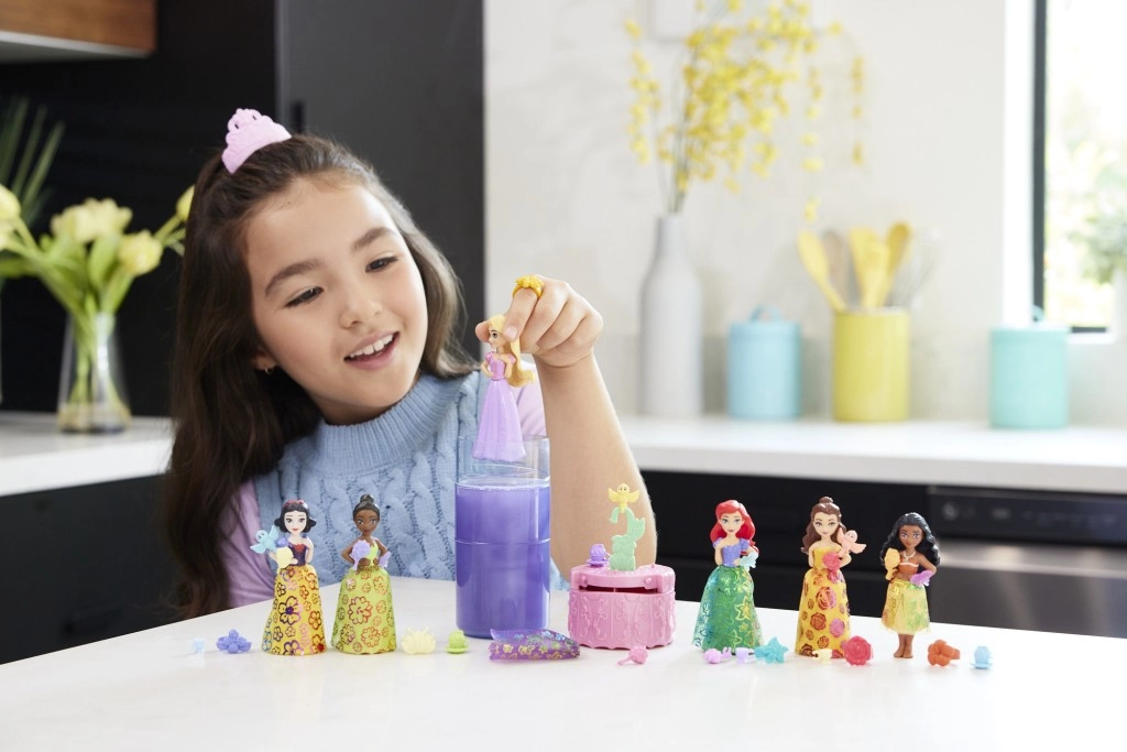 - Obsahuje malé bábiky s prekvapením, napríklad: Ariel, Bella, Vaiana, Rapunzel, Snehulienka a Tiana.