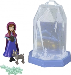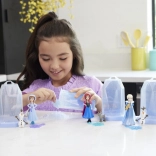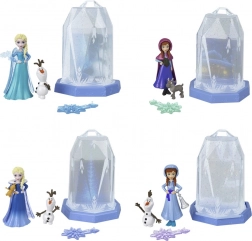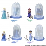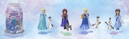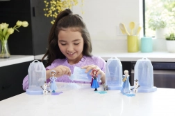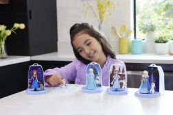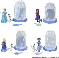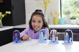 Táto kolekcia malých bábik s prekvapeniami ponúka inovatívny zážitok z rozbaľovania vďaka Squishy Ice™ – ľadovo modrej želé zmesi. Deti sa pomocou priloženej lopatky prehrabú nádobkou so Squishy Ice™ a objavia poklady vo vnútri: malú bábiku Annu alebo Elsu, postavičku kamarátky a 4 herné prvky.