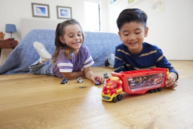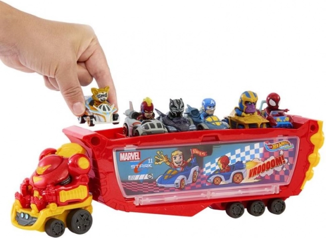 Deti môžu odpojiť prednú kabínu a hrať sa s ňou samostatne. Po nadvihnutí helmy sa odhalí neodnímateľná figúrka Tonyho Starka na sedadle vodiča, ktorá rozvíja príbehy a kreatívne scenáre. Transportér pojme až 10 autíčok Hot Wheels RacerVerse alebo štandardných modelov Hot Wheels v mierke 1:64.