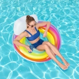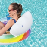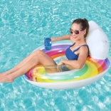 Štýlový dúhový kruh BESTWAY je ideálny do bazéna, na jazero aj na pláž. Vďaka integrovanej závetrii s pohodlnou opierkou hlavy si doprajete skutočný oddych na vodnej hladine, zatiaľ čo praktický držiak na kelímok udrží váš nápoj vždy po ruke.